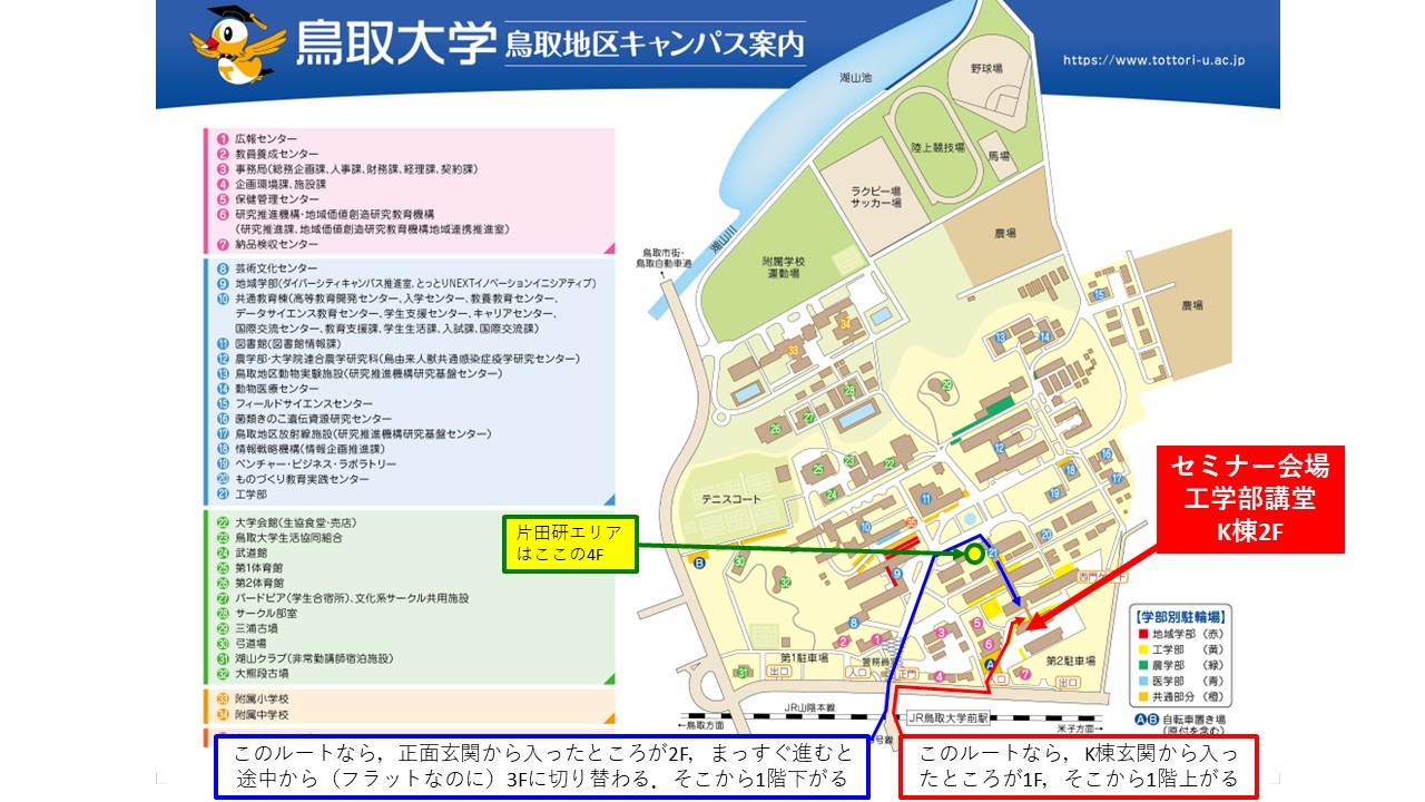 会場: 〒680-8552 鳥取市湖山町南4-101 鳥取大学工学部講堂(旧大講義室, 工学部大学院棟2F)